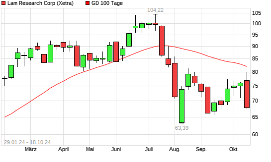 Mit dem Anstieg auf 71,82 EUR hat die Lam Research-Aktie am 28.01.2025 die 100-Tage-Linie nach oben gekreuzt.