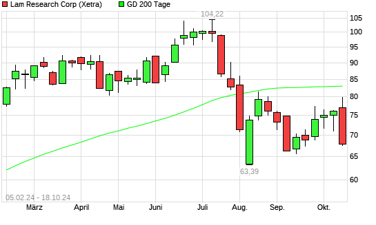 Mit dem Rücksetzer auf 78,17 EUR hat die Lam Research-Aktie am 03.02.2025 die 200-Tage-Linie nach unten gekreuzt.