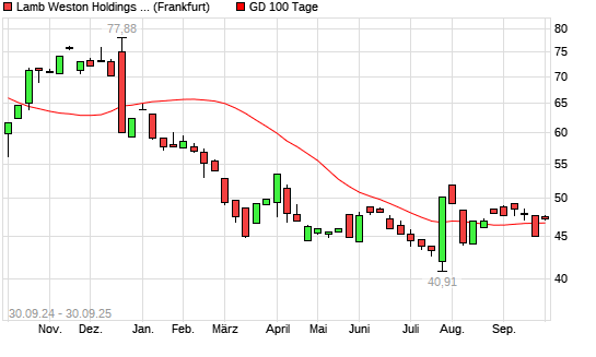 Mit dem Anstieg auf 47,00 EUR hat die Lamb Weston-Aktie am 29.09.2025 die 100-Tage-Linie nach oben gekreuzt.