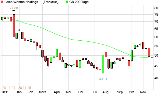 Mit dem Anstieg auf 48,75 EUR hat die Lamb Weston-Aktie am 19.11.2025 die 200-Tage-Linie nach oben gekreuzt.