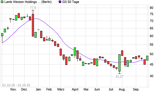 Mit dem Anstieg auf 48,69 EUR hat die Lamb Weston-Aktie am 30.09.2025 die 50-Tage-Linie nach oben gekreuzt.