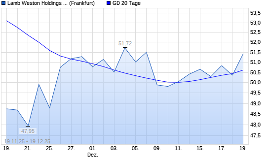 Mit dem Rücksetzer auf 50,36 EUR hat die Lamb Weston-Aktie am 18.12.2025 die 20-Tage-Linie nach unten gekreuzt.