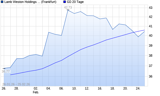 Mit dem Rücksetzer auf 39,89 EUR hat die Lamb Weston-Aktie am 24.02.2026 die 20-Tage-Linie nach unten gekreuzt.