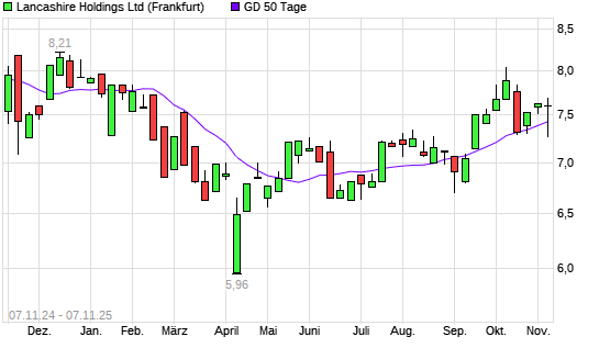Mit dem Anstieg auf 7,55 EUR hat die Lancashire Holdings-Aktie am 06.11.2025 die 50-Tage-Linie nach oben gekreuzt.