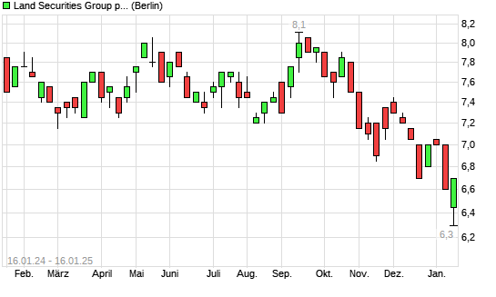 Mit dem Rücksetzer auf 6,30 EUR hat die Land Securities Group-Aktie (ISIN GB00BYW0PQ60) am 15.01.2025 ein neues 12-Monats-Tief erreicht und damit den Kurs vom 14.01.2025 eingestellt.