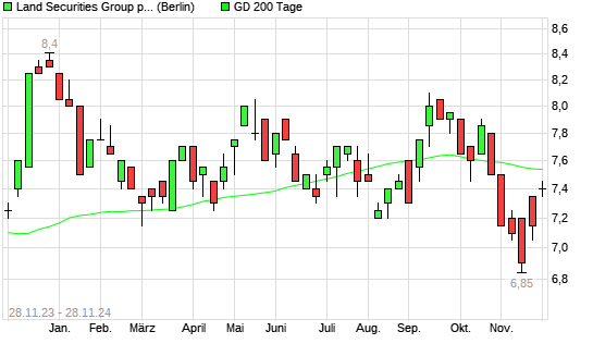 Mit dem Anstieg auf 7,60 EUR hat die Land Securities Group-Aktie am 27.11.2024 die 200-Tage-Linie nach oben gekreuzt.