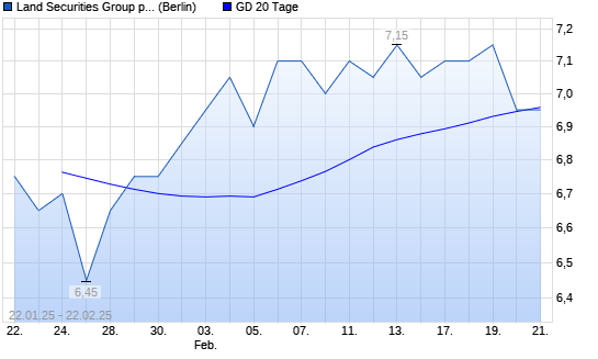 Mit dem Rücksetzer auf 6,90 EUR hat die Land Securities Group-Aktie am 21.02.2025 die 20-Tage-Linie nach unten gekreuzt.