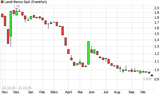 Mit dem Rücksetzer auf 0,95 EUR hat die Landi Renzo SpA-Aktie (ISIN IT0005619843) am 20.10.2025 ein neues All-Time-Low erreicht und damit den Kurs vom 22.09.2025 eingestellt.