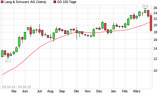 Mit dem Rücksetzer auf 20,40 EUR hat die Lang & Schwarz-Aktie am 03.04.2025 die 100-Tage-Linie nach unten gekreuzt.