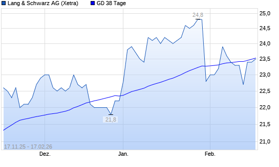 Mit dem Rücksetzer auf 23,30 EUR hat die Lang & Schwarz-Aktie am 16.02.2026 die 38-Tage-Linie nach unten gekreuzt.