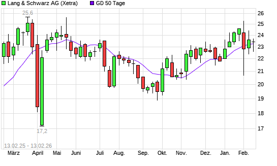 Mit dem Rücksetzer auf 22,50 EUR hat die Lang & Schwarz-Aktie am 12.02.2026 die 50-Tage-Linie nach unten gekreuzt.