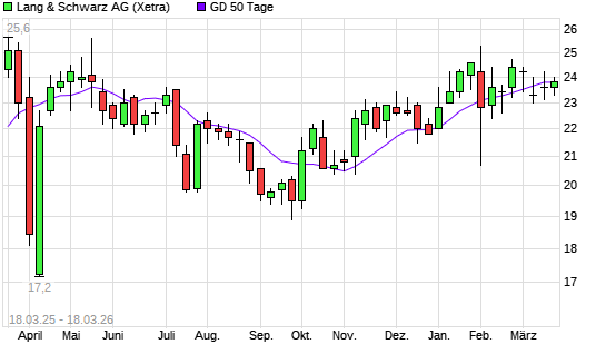 Mit dem Rücksetzer auf 23,70 EUR hat die Lang & Schwarz-Aktie am 17.03.2026 die 50-Tage-Linie nach unten gekreuzt.