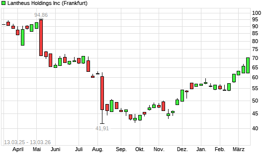 Mit dem Anstieg auf 70,20 EUR hat die Lantheus Holdings-Aktie (ISIN US5165441032) am 12.03.2026 ein neues 6-Monats-Hoch erreicht und damit den Kurs vom 11.03.2026 eingestellt.