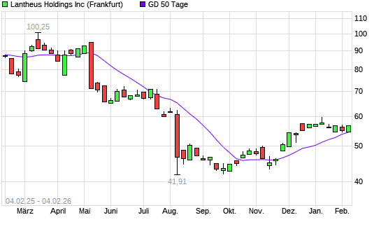 Mit dem Anstieg auf 56,00 EUR hat die Lantheus Holdings-Aktie am 03.02.2026 die 50-Tage-Linie nach oben gekreuzt.