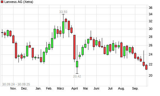 Mit dem Rücksetzer auf 21,38 EUR hat die Lanxess-Aktie (ISIN DE0005470405) am 29.09.2025 ein neues 12-Monats-Tief erreicht und damit den Kurs vom 26.09.2025 eingestellt.