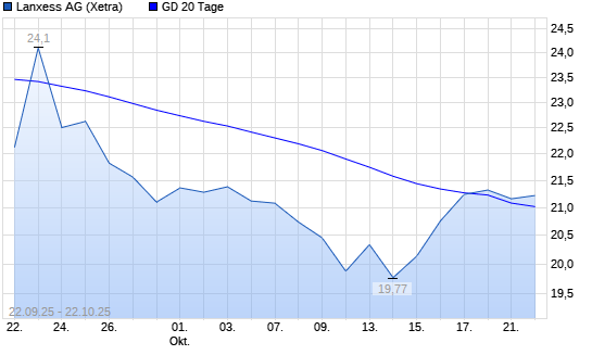 Mit dem Anstieg auf 21,64 EUR hat die Lanxess-Aktie am 21.10.2025 die 20-Tage-Linie nach oben gekreuzt.