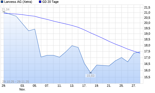 Mit dem Anstieg auf 17,52 EUR hat die Lanxess-Aktie am 28.11.2025 die 20-Tage-Linie nach oben gekreuzt.