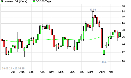 Mit dem Anstieg auf 27,00 EUR hat die Lanxess-Aktie am 27.05.2025 die 200-Tage-Linie nach oben gekreuzt.