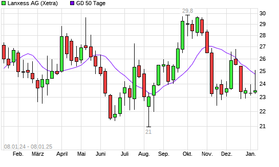 Mit dem Rücksetzer auf 24,09 EUR hat die Lanxess-Aktie am 07.01.2025 die 50-Tage-Linie nach unten gekreuzt.