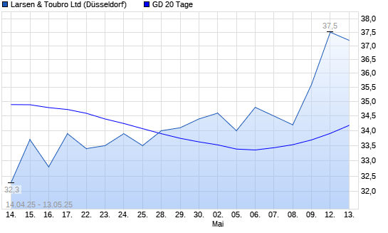 Mit dem Anstieg auf 34,20 EUR hat die Larsen & Toubro-Aktie am 12.05.2025 die 20-Tage-Linie nach oben gekreuzt.