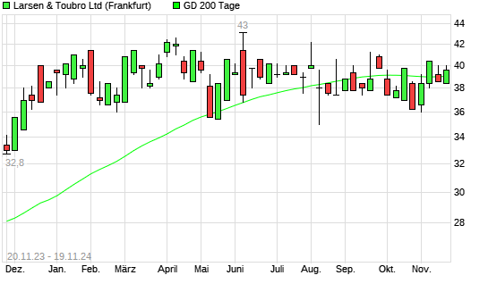 Mit dem Anstieg auf 40,00 EUR hat die Larsen & Toubro-Aktie am 18.11.2024 die 200-Tage-Linie nach oben gekreuzt.