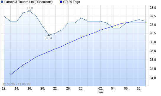 Mit dem Rücksetzer auf 36,60 EUR hat die Larsen & Toubro-Aktie am 10.06.2025 die 20-Tage-Linie nach unten gekreuzt.