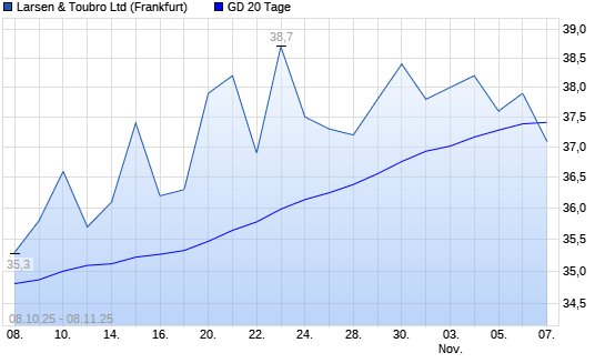 Mit dem Rücksetzer auf 37,10 EUR hat die Larsen & Toubro-Aktie am 07.11.2025 die 20-Tage-Linie nach unten gekreuzt.