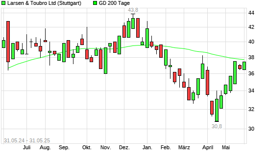 Mit dem Rücksetzer auf 36,40 EUR hat die Larsen & Toubro-Aktie am 30.05.2025 die 200-Tage-Linie nach unten gekreuzt.