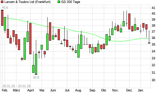 Mit dem Rücksetzer auf 36,00 EUR hat die Larsen & Toubro-Aktie am 19.01.2026 die 200-Tage-Linie nach unten gekreuzt.