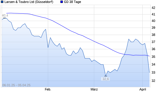 Mit dem Rücksetzer auf 33,60 EUR hat die Larsen & Toubro-Aktie am 04.04.2025 die 38-Tage-Linie nach unten gekreuzt.