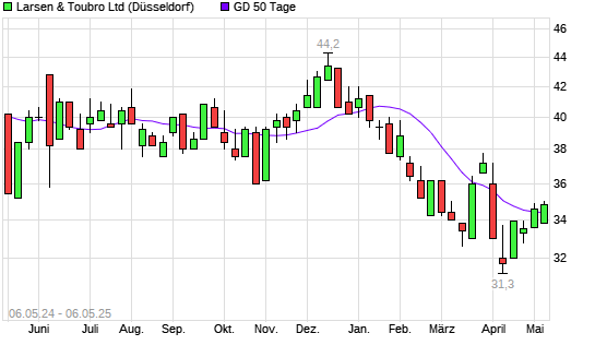 Mit dem Rücksetzer auf 34,10 EUR hat die Larsen & Toubro-Aktie am 05.05.2025 die 50-Tage-Linie nach unten gekreuzt.
