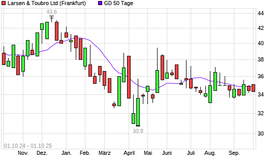 Mit dem Rücksetzer auf 34,50 EUR hat die Larsen & Toubro-Aktie am 30.09.2025 die 50-Tage-Linie nach unten gekreuzt.