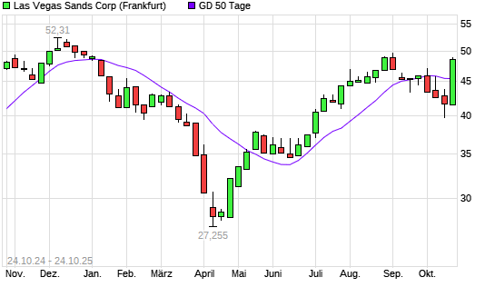 Mit dem Anstieg auf 48,82 EUR hat die Las Vegas Sands-Aktie am 23.10.2025 die 50-Tage-Linie nach oben gekreuzt.
