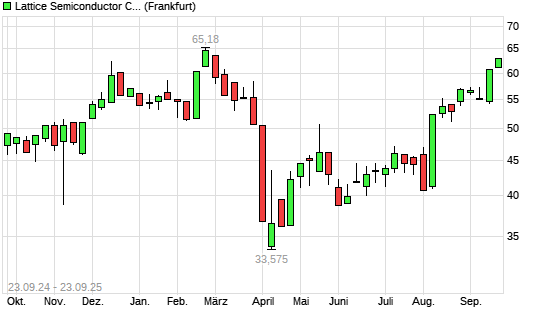 Mit dem Anstieg auf 61,16 EUR hat die Lattice Semiconductor-Aktie (ISIN US5184151042) am 22.09.2025 ein neues 6-Monats-Hoch erreicht und damit den Kurs vom 19.09.2025 eingestellt.