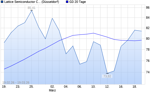 Mit dem Anstieg auf 80,03 EUR hat die Lattice Semiconductor-Aktie am 18.03.2026 die 20-Tage-Linie nach oben gekreuzt.