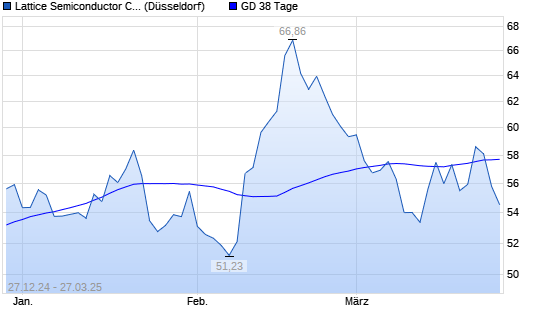 Mit dem Rücksetzer auf 57,54 EUR hat die Lattice Semiconductor-Aktie am 26.03.2025 die 38-Tage-Linie nach unten gekreuzt.
