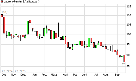 Mit dem Rücksetzer auf 87,20 EUR hat die Laurent-Perrrier-Aktie (ISIN FR0006864484) am 26.09.2025 ein neues 3-Jahres-Tief erreicht und damit den Kurs vom 25.09.2025 eingestellt.
