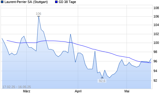Mit dem Anstieg auf 95,60 EUR hat die Laurent-Perrrier-Aktie am 15.05.2025 die 38-Tage-Linie nach oben gekreuzt.