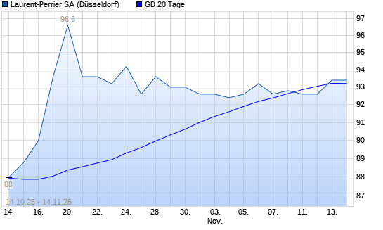 Mit dem Anstieg auf 93,80 EUR hat die Laurent-Perrrier-Aktie am 13.11.2025 die 20-Tage-Linie nach oben gekreuzt.Die Laurent-Perrrier-Aktie befindet sich seit dem 22.10.2025 ...weiterlesen