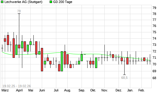 Mit dem Anstieg auf 71,00 EUR hat die Lechwerke-Aktie am 18.02.2026 die 200-Tage-Linie nach oben gekreuzt.