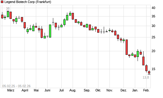 Mit dem Rücksetzer auf 14,20 EUR hat die Legend Biotech Corp-Aktie (ISIN US52490G1022) am 04.02.2026 ein neues All-Time-Low erreicht und damit den Kurs vom 03.02.2026 eingestellt.