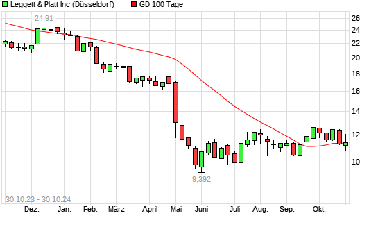 Mit dem Anstieg auf 11,73 EUR hat die Leggett & Platt-Aktie am 29.10.2024 die 100-Tage-Linie nach oben gekreuzt.