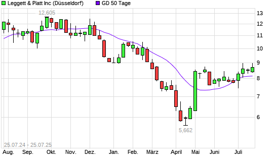 Mit dem Anstieg auf 8,88 EUR hat die Leggett & Platt-Aktie am 24.07.2025 die 50-Tage-Linie nach oben gekreuzt.