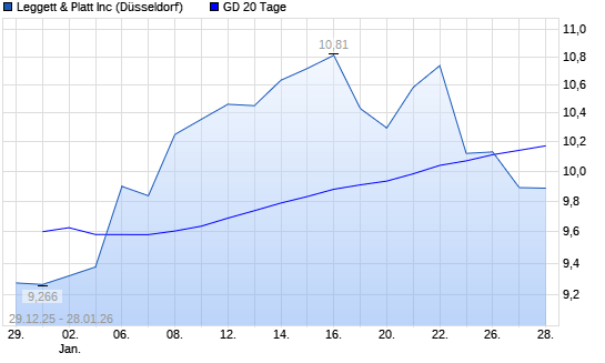Mit dem Rücksetzer auf 10,06 EUR hat die Leggett & Platt-Aktie am 27.01.2026 die 20-Tage-Linie nach unten gekreuzt.