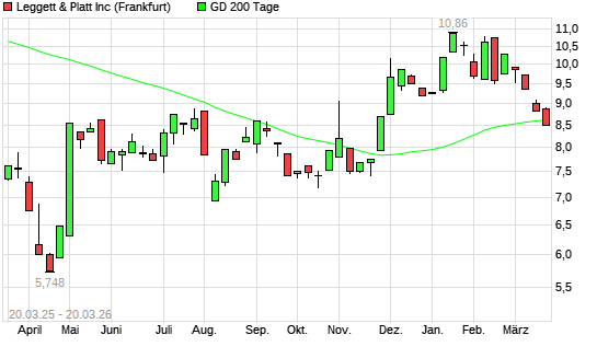 Mit dem Rücksetzer auf 8,50 EUR hat die Leggett & Platt-Aktie am 19.03.2026 die 200-Tage-Linie nach unten gekreuzt.