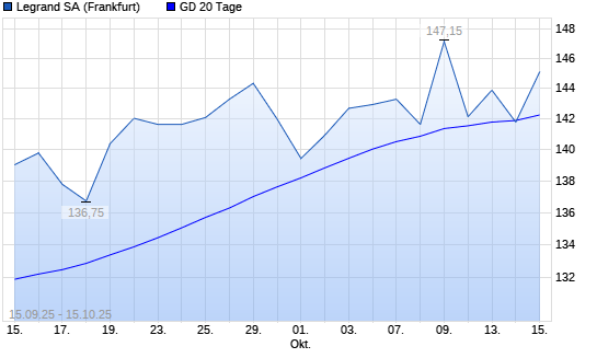 Mit dem Rücksetzer auf 141,80 EUR hat die Legrand-Aktie am 14.10.2025 die 20-Tage-Linie nach unten gekreuzt.
