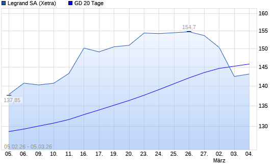 Mit dem Rücksetzer auf 139,90 EUR hat die Legrand-Aktie am 04.03.2026 die 20-Tage-Linie nach unten gekreuzt.