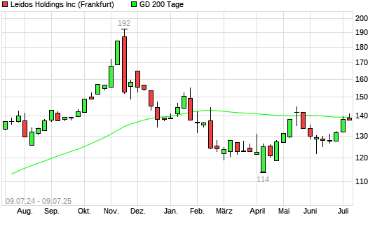 Mit dem Rücksetzer auf 138,15 EUR hat die Leidos Holdings-Aktie am 08.07.2025 die 200-Tage-Linie nach unten gekreuzt.