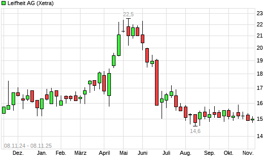 Mit dem Rücksetzer auf 14,75 EUR hat die Leifheit-Aktie (ISIN DE0006464506) am 07.11.2025 ein neues 12-Monats-Tief erreicht und damit den Kurs vom 06.11.2025 eingestellt.