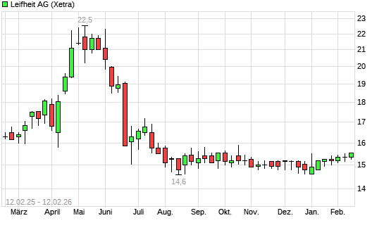 Mit dem Anstieg auf 15,80 EUR hat die Leifheit-Aktie (ISIN DE0006464506) am 11.02.2026 ein neues 6-Monats-Hoch erreicht und damit den Kurs vom 10.09.2025 eingestellt.